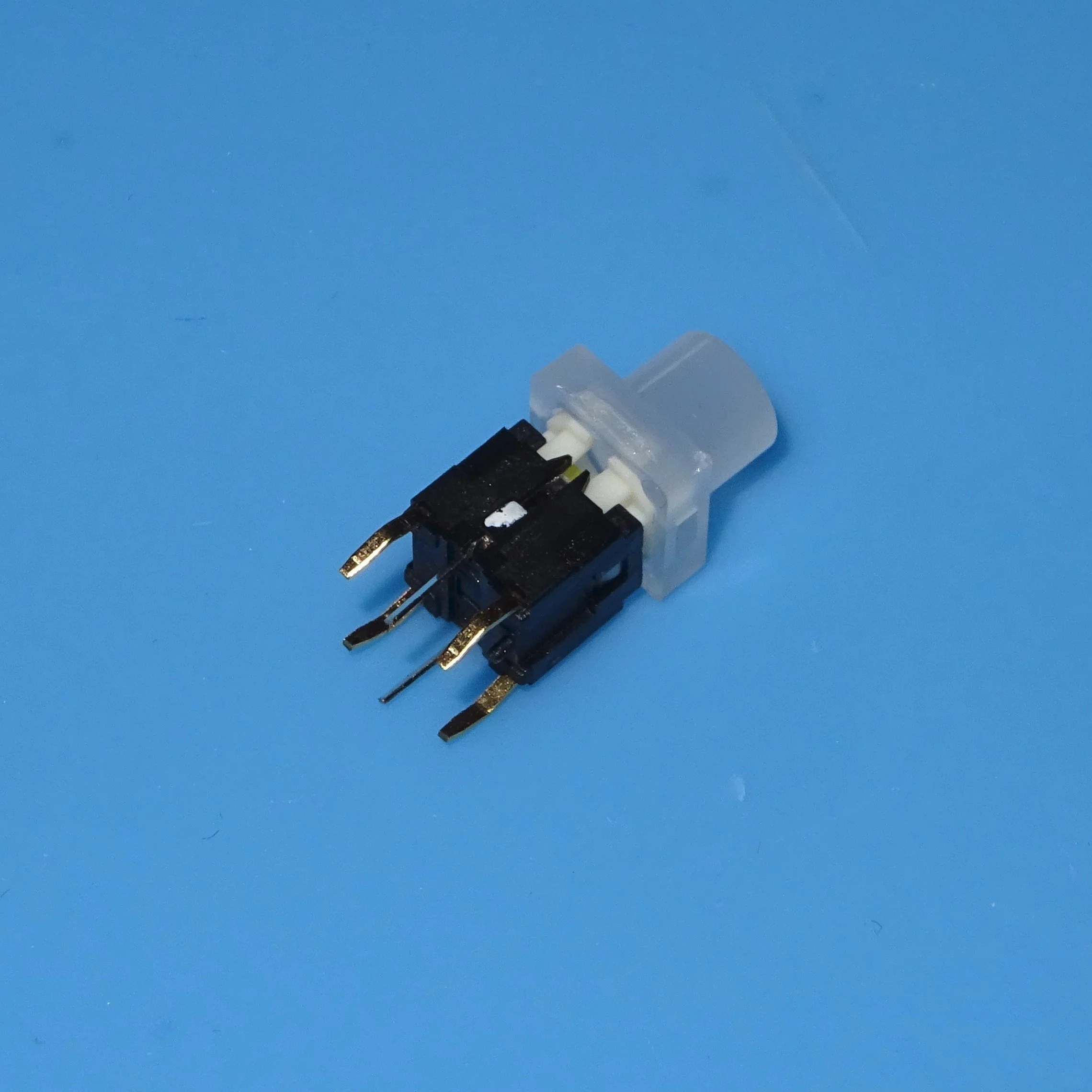 First start by placing the led switches. Please note that these are polarized. There is a white dot on the side of the buttons. This side goes on the right.
